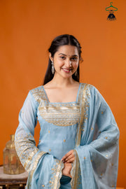 Zari Embroidery 3Piece Suit With Brocade Bottom